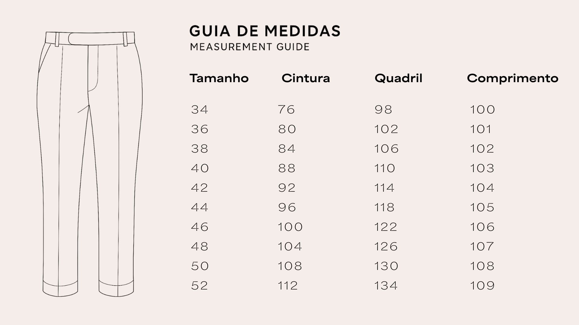Caso não encontre as suas medidas, entre em contato com o nosso time.
