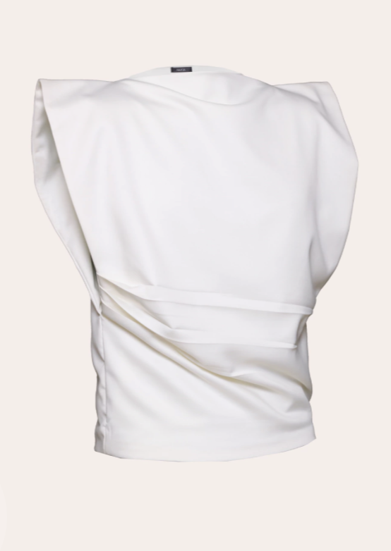 A Regata Joy une minimalismo e sofisticação em um design arquitetônico. Confeccionada em tecido acetinado estruturado, apresenta ombros marcados, ziper lateral para faciltar o vestir, silhueta reta e pregas sutis na cintura que proporcionam imponência e movimento. Atemporal e versátil, transita do casual chic ao sofisticado noturno, sendo sempre a protagonista do look.